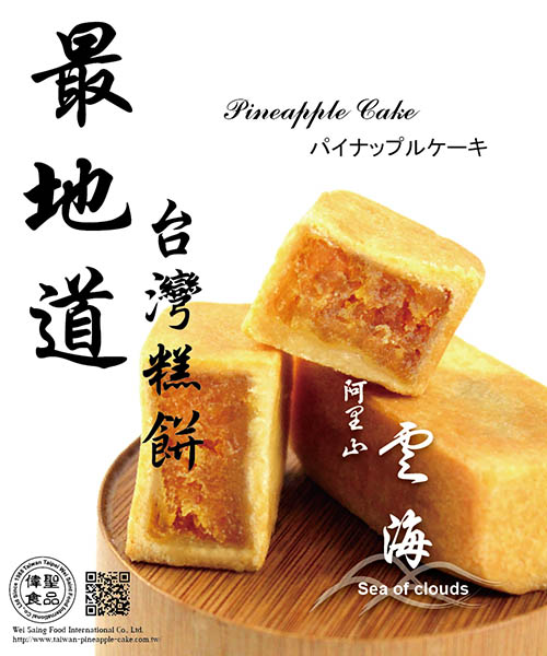 嘗一口雲海鳳梨酥,讓您不遠萬里就像是處立在台灣阿里山高處,面對由雲霧形成如此寂靜卻又氣勢磅礴的仙境雲海,環繞著你和青山脈動,那種綿密酸甜的口感~絕對令您無法忘懷,戀戀不願離去..這種柔得令人生夢的滋味,就是代表台灣最高!最美!最地道!也是最感動的幸福味。